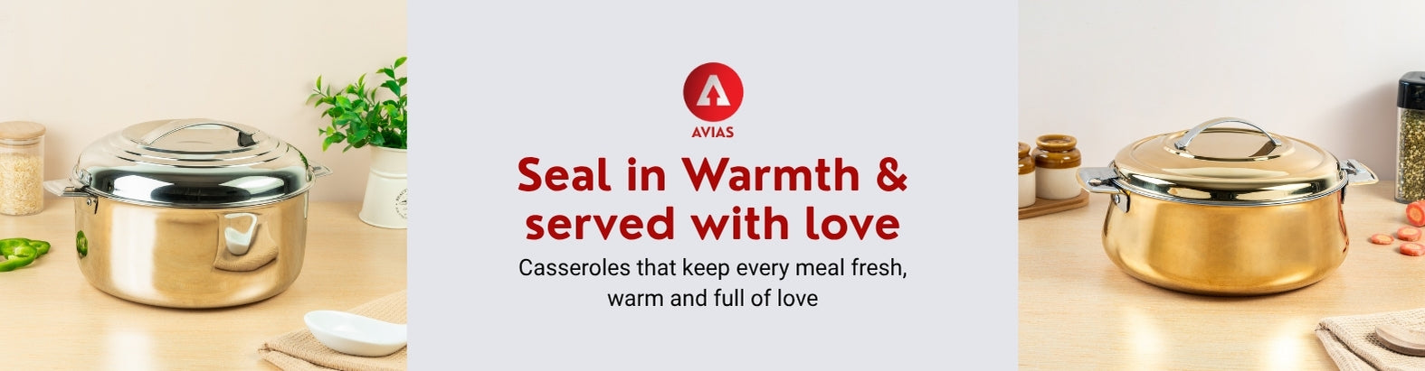 Impeccably crafted, these Avias stainless steel casseroles embody the perfect fusion of timeless elegance and enduring functionality. The lustrous stainless steel casserole construction not only ensures durability but also adds a touch of sophistication to your table setting. The aesthetic appeal of our stainless steel casserole sets enhances the presentation of your dishes, turning every meal into a culinary masterpiece