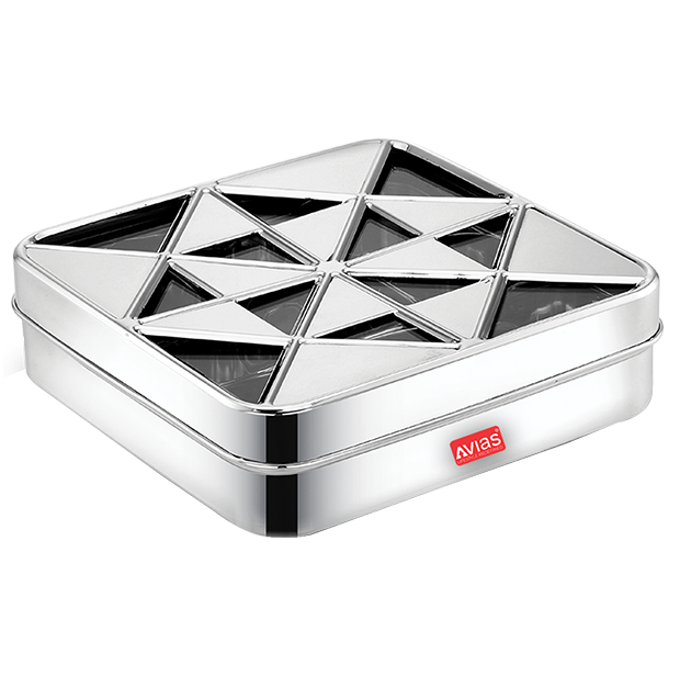 Crafted with precision, these versatile containers are designed to elevate your kitchen organization. With multiple compartments, these boxes are perfect for organizing an array of spices, dry fruits, or other kitchen essentials. Experience the impeccably polished stainless steel that not only ensures durability but also adds a touch of sophistication to your spice storage
